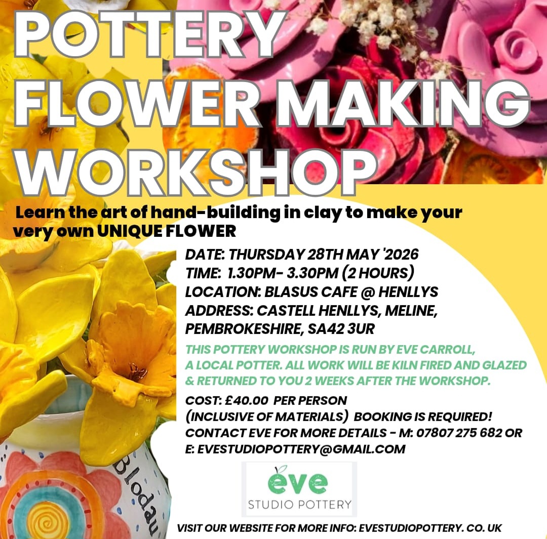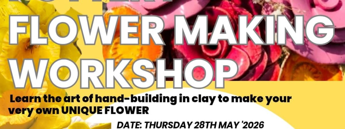 Clay flower examples will be brought along on the day, to give you an idea of how your flower will look, after it has been bisque fired and glazed. Booking is essential for this workshop. Please contact Eve for more Information.